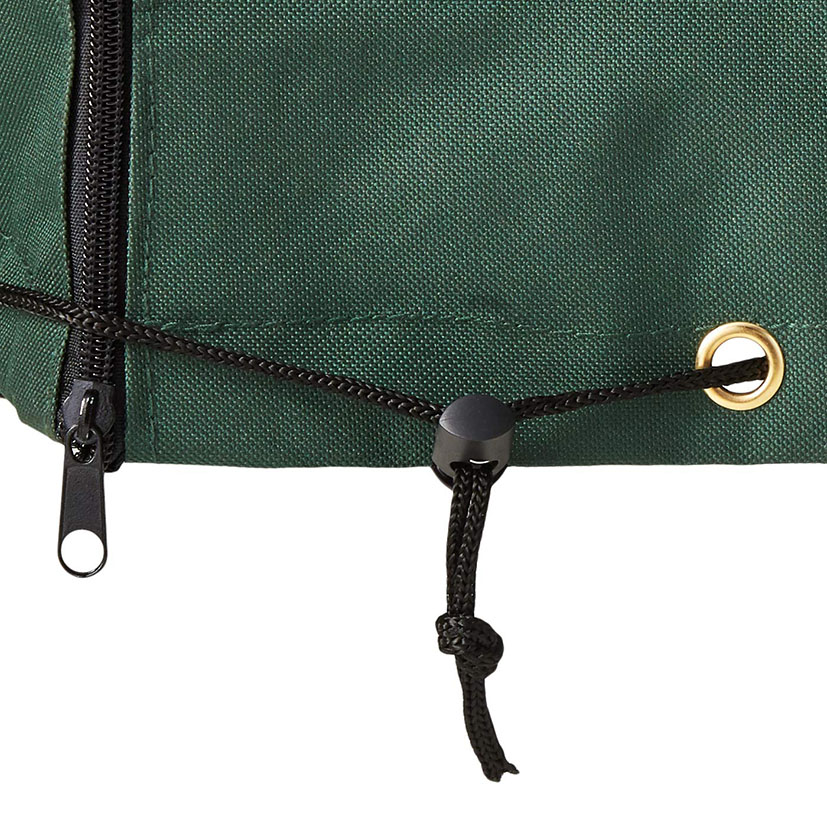 Esta funda de protección en forma rectangular está fabricada en poliéster 240 gr/m2 impermeable. Incorpora bolsillos en los laterales y ojales más cuerda de sujeción.