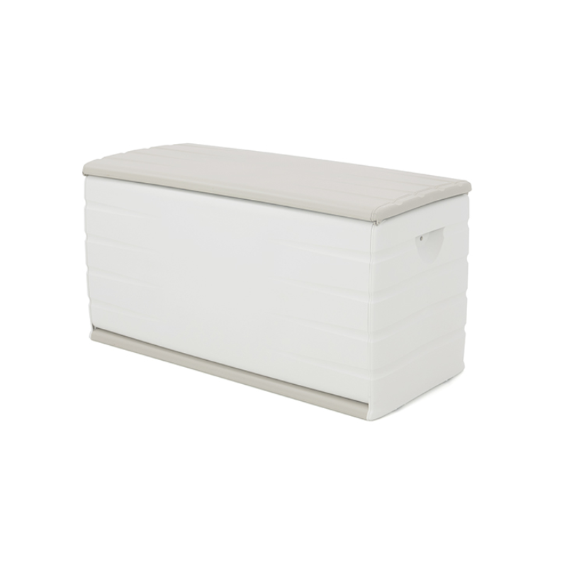 Fabricado en resina resistente, ofrece una estructura ligera, duradera y fácil de limpiar. Su formato rectangular permite aprovechar mejor el espacio disponible y la tapa superior facilita un acceso cómodo al interior.