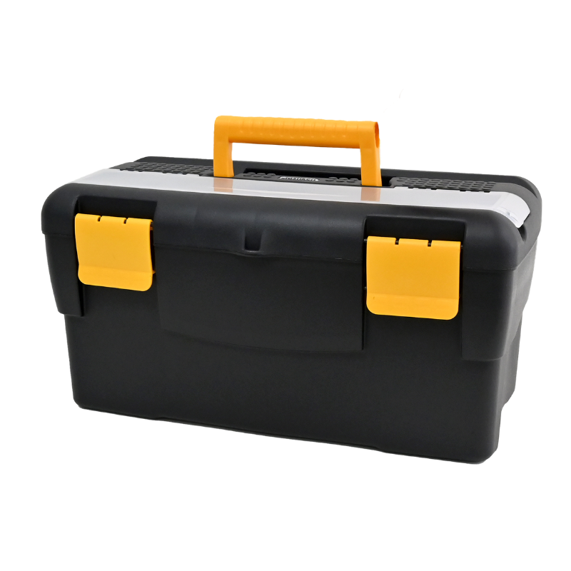 Fabricada en plástico resistente, ofrece una estructura sólida y ligera a la vez. Incorpora cierres seguros y un asa superior ergonómica que facilita su transporte tanto en trabajos domésticos como en entornos profesionales.