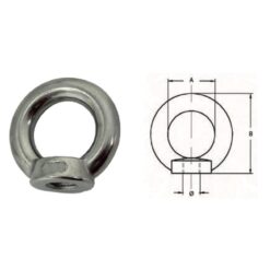 Cáncamo Hembra Inoxidable M08, fabricado en acero inoxidable AISI-316, resistente a la corrosión y homologado bajo norma DIN 582.