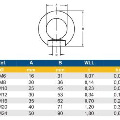 El Cáncamo Hembra Inoxidable M08 es la solución perfecta para aplicaciones de elevación de cargas en entornos exigentes. Fabricado en acero inoxidable AISI-316, destaca por su excepcional resistencia a la corrosión, incluso en ambientes marinos o industriales. Su diseño robusto y su homologación bajo la norma DIN 582 garantizan la seguridad y fiabilidad que necesitas para tus proyectos.