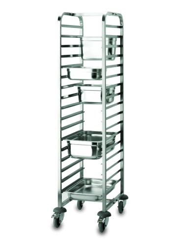 Carro porta bandejas de Lacor. Para tamaño 60 x 40 cm. Tamaño: 45 (frente) x 62 (fondo) x 172 (altura ) cm. Cuenta con 20 baldas. Estable y resistente