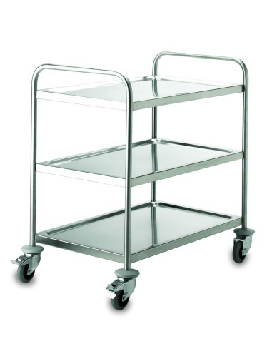 Lacor cuenta con varios modelos de carros de servicio para uso profesional en hostelería. Las características de este carro de servicio con 3 bandejas, soldado (no desmontable), son las siguientes: