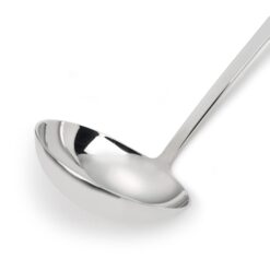 Este cazo está fabricado en acero inoxidable, lo que asegura una alta resistencia a la corrosión y una larga vida útil. Es fácil de limpiar y mantener, siendo apto para lavavajillas, lo que lo convierte en una opción práctica y duradera para el uso diario o en ocasiones especiales.