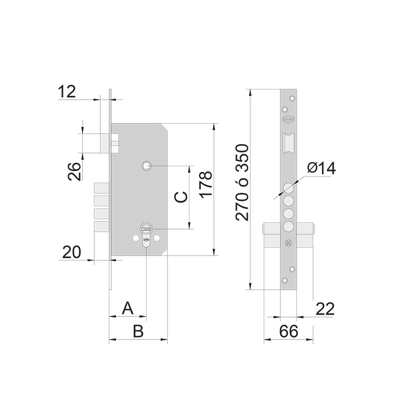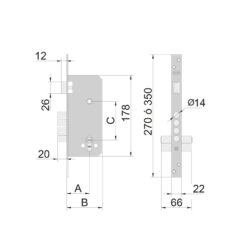Cerradura con picaporte y un punto frontal de cierre de bulones y 2 vueltas de llave. Tiene cilindro europerfil con una distancia entre ejes de 85mm y entrada de 50 mm. El picaporte es reversible. Se presenta en una caja. Puedes ver las medidas de la cerradura consultando el croquis que tenemos colgado en nuestra web.