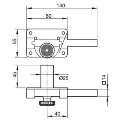 Cerrojo para sobreponer con pomo interior y llave exterior. Está disponible en 2 acabados. Se presenta en caja.
