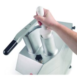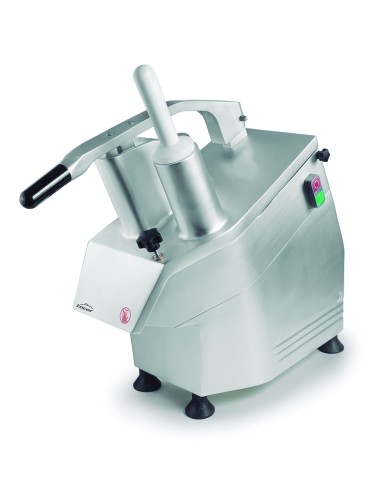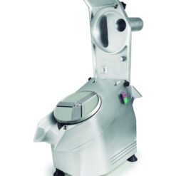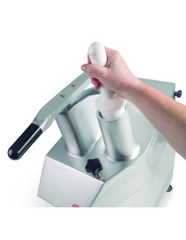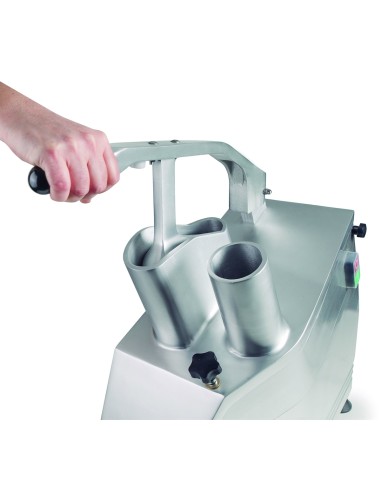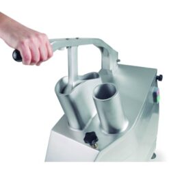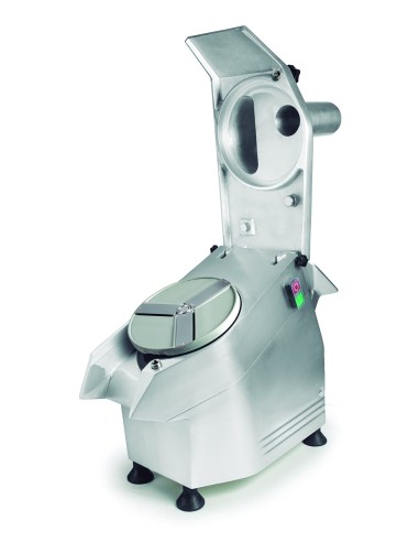 Gracias a su transmisión por correa, la cortadora de verduras está preparada para un uso continuo, necesario en el ámbito profesional. Cuenta con dos sistemas de seguridad complementarios: un tornillo de bloqueo y un sensor que apaga la máquina en el caso de que la tapa se abra; y con patas de goma para una mayor estabilidad.