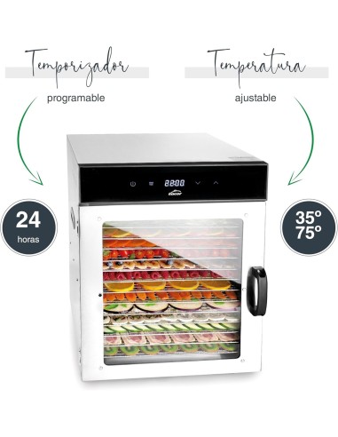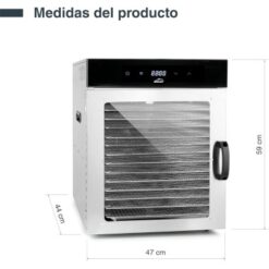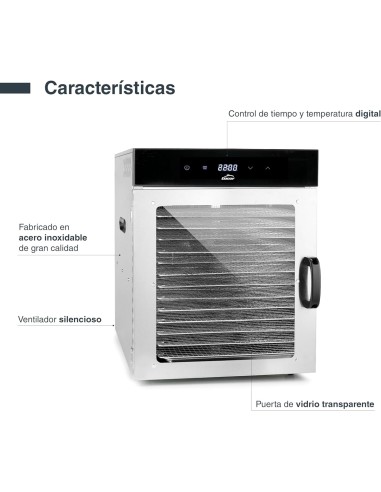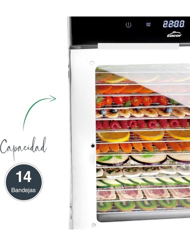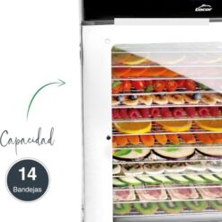 • Gran capacidad: Incluye 14 bandejas extraíbles de acero inoxidable 18/10, perfectas para procesar grandes cantidades de alimentos.