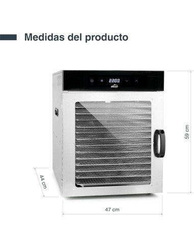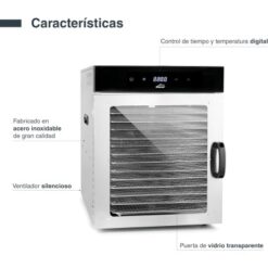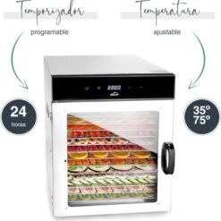 • Fácil monitoreo: Puerta de vidrio transparente que permite observar el proceso de deshidratación sin interrupciones.
