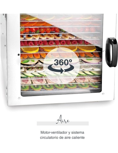 • Rendimiento superior: Motor-ventilador con sistema de circulación de aire caliente de 360° que garantiza una deshidratación uniforme y eficiente.