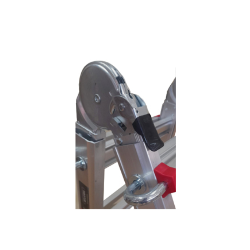 Fabricada íntegramente en aluminio, combina ligereza con una estructura robusta, ideal para uso intensivo. Sus bisagras automáticas de acero con sistema de bloqueo de seguridad permiten un cambio rápido y seguro entre diferentes configuraciones: tijera, apoyo mural o extendida.