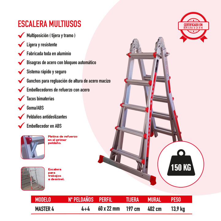• Escalera multiposición 4×4 profesional