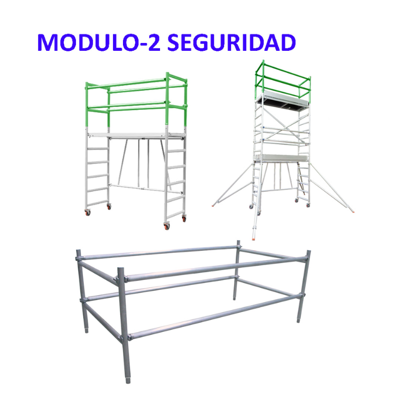 El Módulo Seguridad 2 Oakland es una extensión diseñada para aumentar la protección del operario en trabajos en altura, actuando como barrera anti-caídas en el andamio.