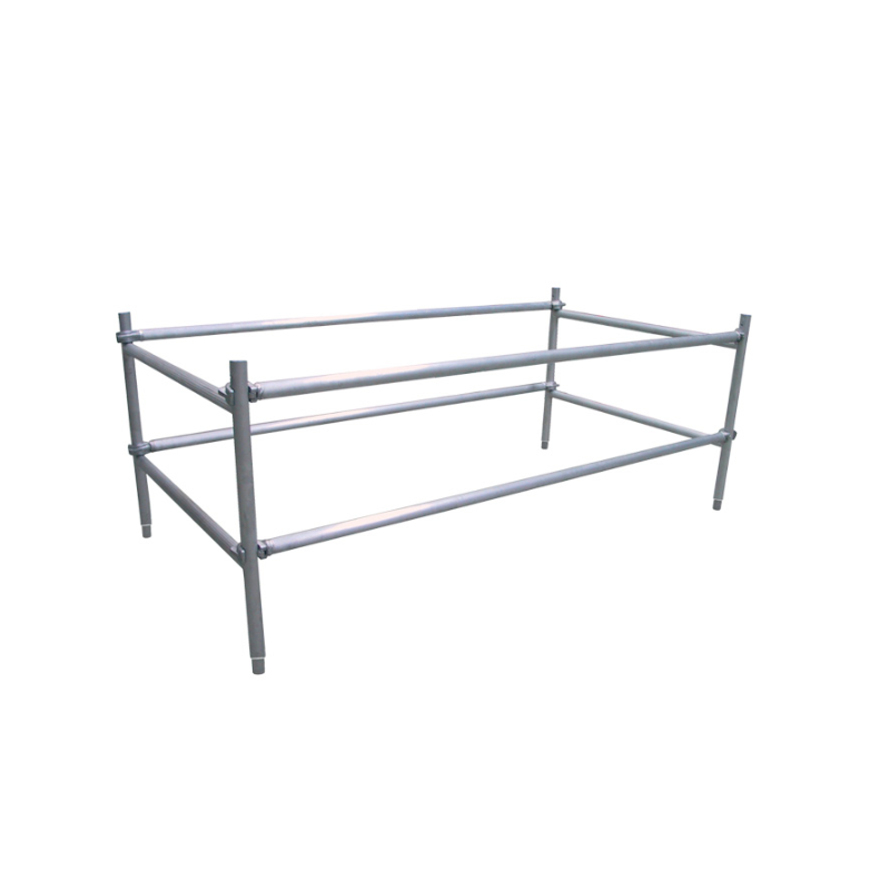 Fabricado en aluminio, este sistema incorpora dos sets de cuatro piezas que forman una estructura perimetral de seguridad, permitiendo trabajar con mayor estabilidad y confianza sobre la plataforma.