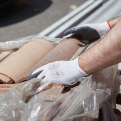 El material de poliéster blanco del guante asegura una gran resistencia al desgaste y una alta flexibilidad. Su diseño sin costuras elimina puntos de presión, proporcionando un confort excepcional durante el uso.