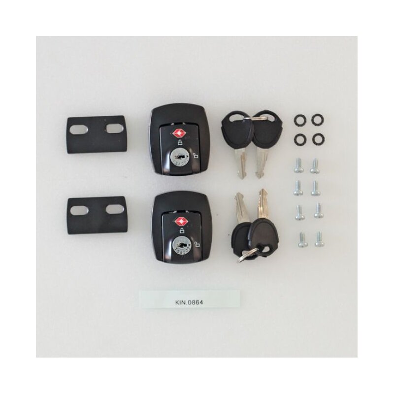 · Juego 2 cerraduras TSA + llaves · Para maletas ROCK 350 y TURTLE 350 Contenido: 2 cerraduras TSA 4 llaves 8 tornillos 4 arandelas 2 espaciadores