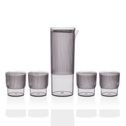 Este juego incluye 5 piezas en total, que consisten en 1 jarra y 4 vasos, todos diseñados para complementar cualquier tipo de ocasión, desde comidas familiares hasta reuniones especiales.