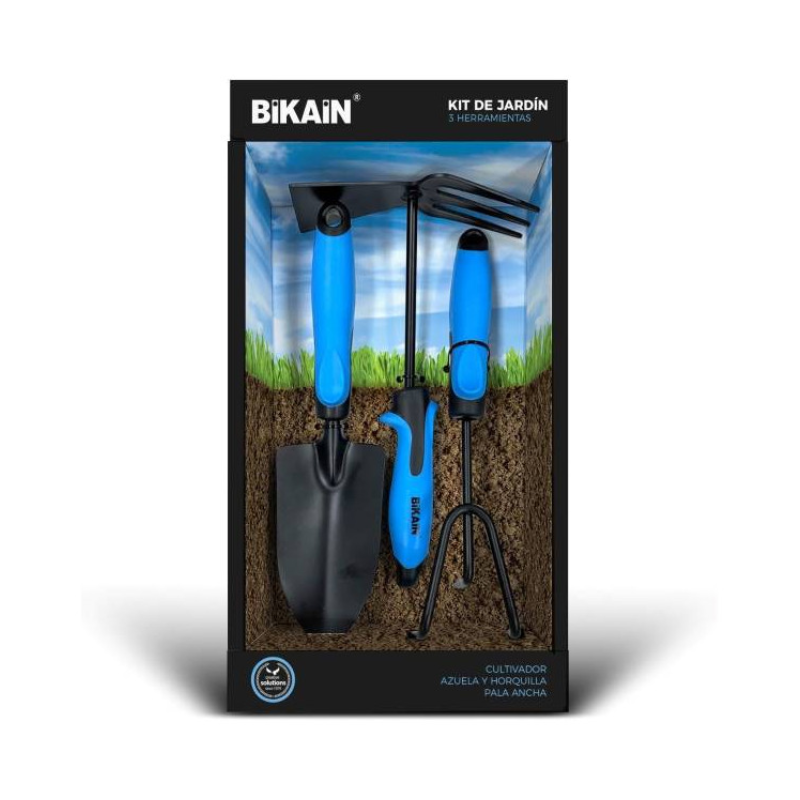 Este conjunto incluye pala ancha, cultivador azuela y horquilla, ideales para preparar la tierra, remover el suelo, airear sustratos o plantar flores y pequeñas plantas.