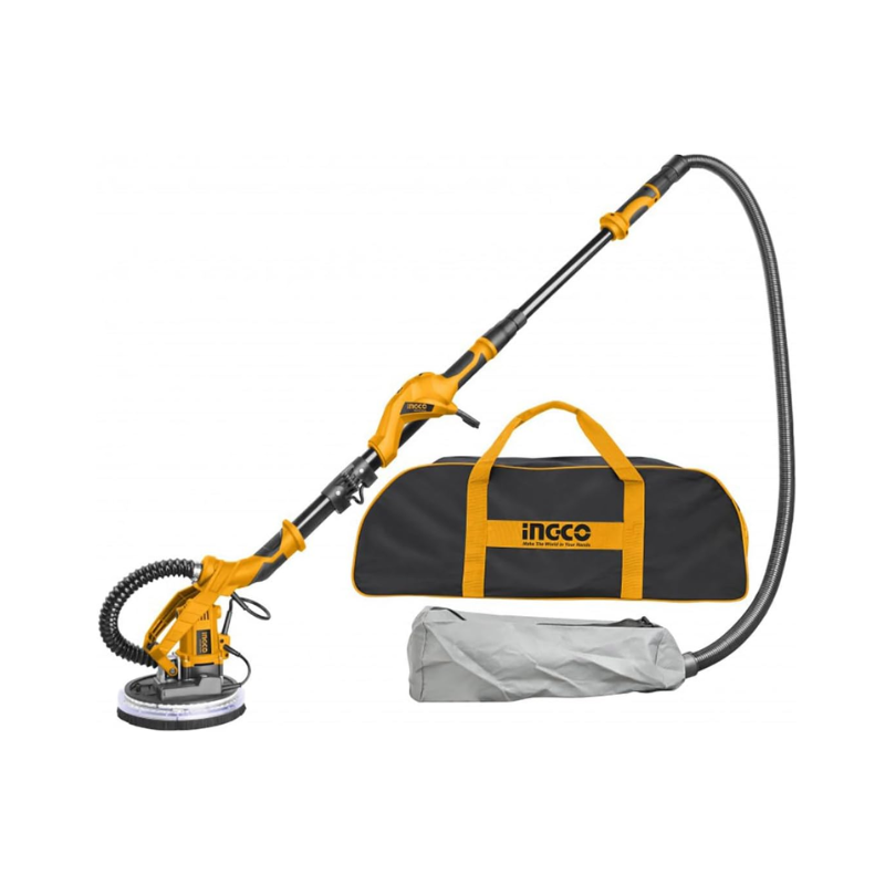 La lijadora de muros 1050W Ingco DWS10501 está diseñada para trabajos profesionales de lijado en paredes y techos. Su brazo extensible permite alcanzar zonas altas sin necesidad de andamios, facilitando trabajos de rehabilitación, pintura y acabado en obra.