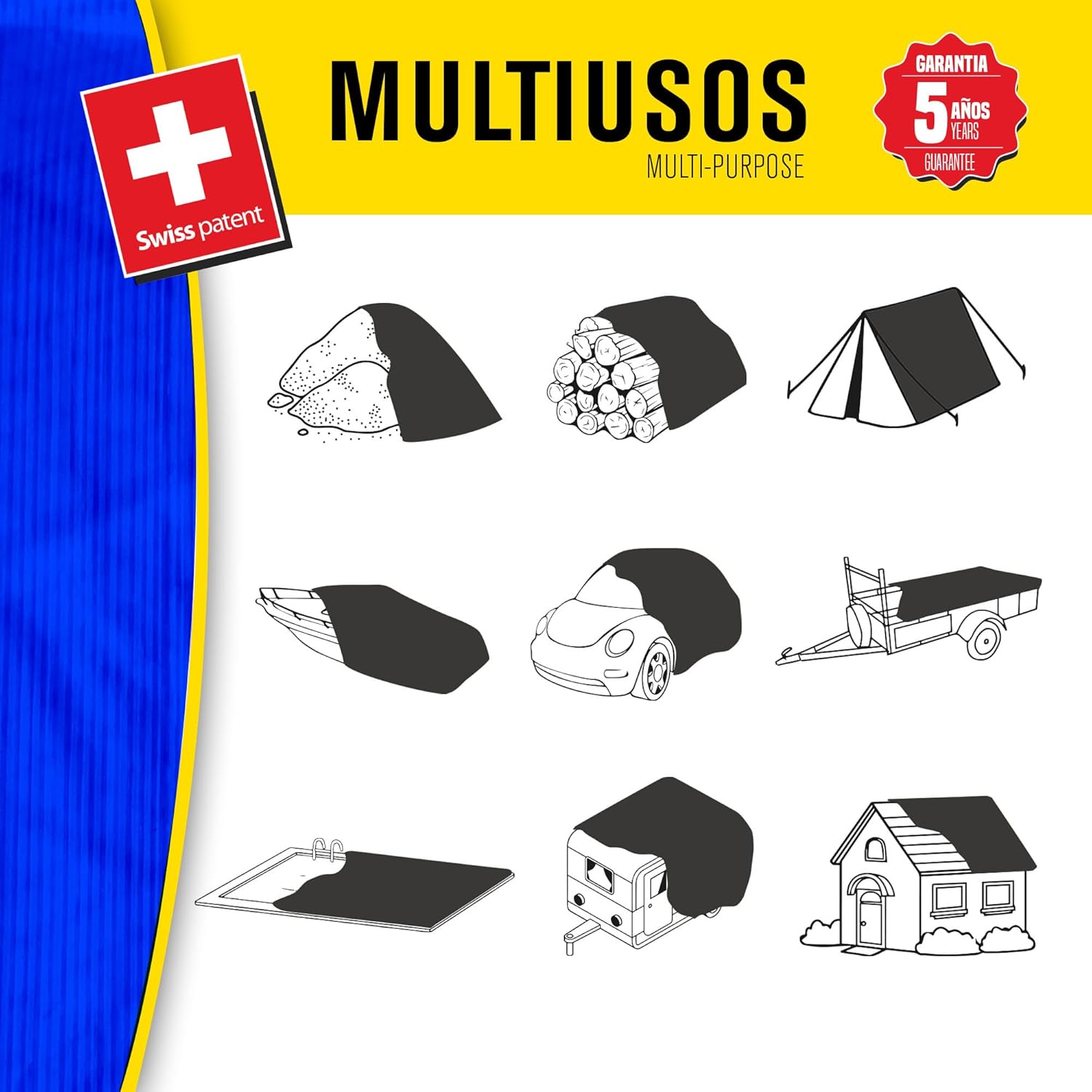 Fabricada en polietileno laminado cruzado de 3 capas, combina ligereza y resistencia, permitiendo cubrir diferentes elementos con facilidad sin renunciar a la durabilidad. Su estructura flexible facilita el manejo y la colocación en distintas superficies o estructuras.