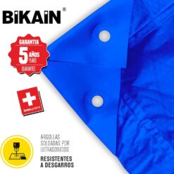 La lona incorpora ojales metálicos y hebillas, que permiten una fijación segura y ajustable mediante cuerdas, gomas o tensores, garantizando una correcta sujeción incluso en exteriores.