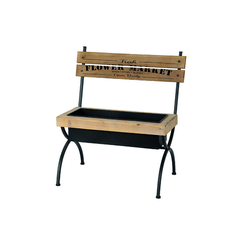 Macetero decorativo con forma de banco que combina metal y madera para dar un toque original a tu espacio.