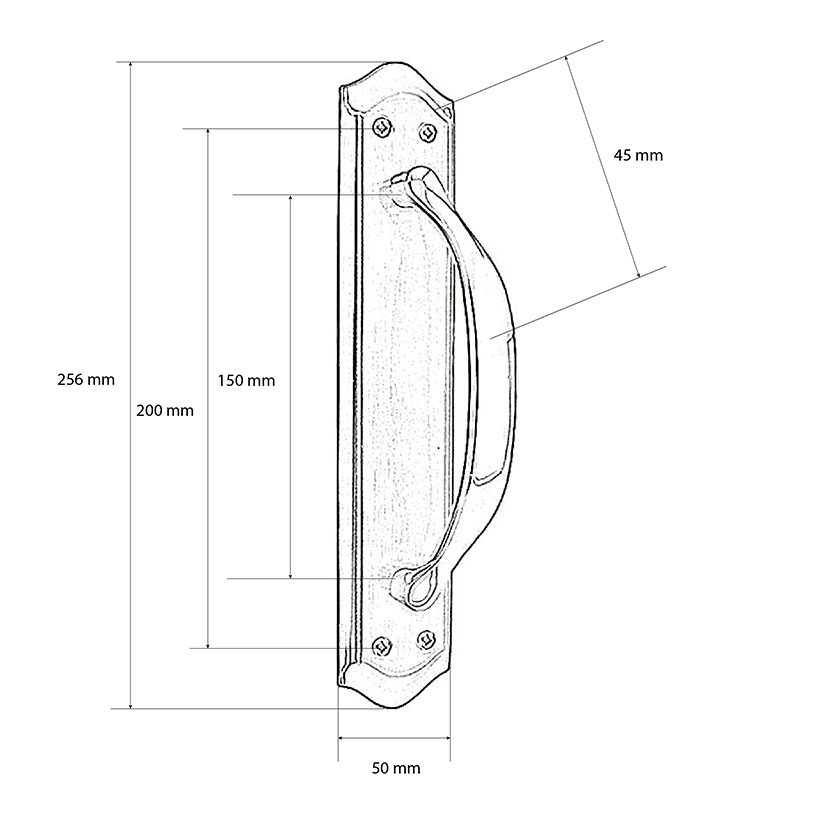 Esta manilla está fabricada en hierro con acabado latonado. De estilo vintage, muy actual con placa clásica de cantos decorativos para puertas de entrada o paso. Tiene unas medidas de 256×49 mm. Puedes consultar el croquis que tenemos colgado en nuestra web. Se presenta en una caja. En nuestra web tenemos el manillón y más accesorios de esta misma serie para que los puedas combinar. Se sirven 4 unidades.