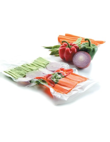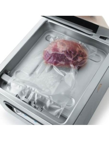 Envasado al vacío de productos alimenticios como legumbres, carnes, pescados, etc. Admite la aspiración de líquidos y salsas en el envasado.
