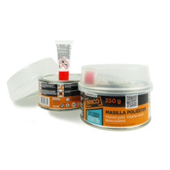 La masilla fibra de vidrio 340 g + catalizador 10 g Miarco 10735 es una masilla de poliéster bicomponente reforzada, diseñada para reparar abolladuras e irregularidades en superficies donde existe corrosión o el área dañada es amplia.
