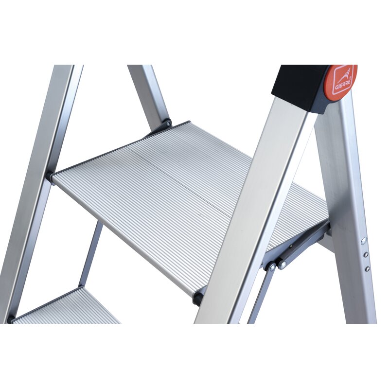 Sólo ocupa 5 cm de ancho plegada.. Peldaños extra anchos.. Amplia plataforma superior.