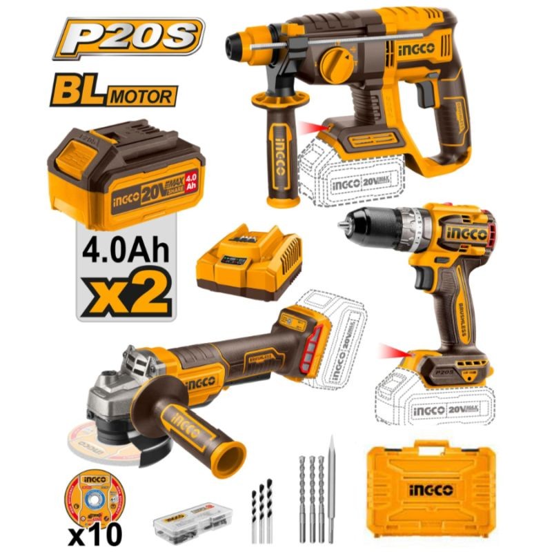 El kit de 3 herramientas inalámbricas INGCO ofrece el equilibrio perfecto entre potencia, autonomía y rendimiento profesional. Diseñado para trabajos exigentes, incluye un taladro de impacto, una amoladora angular y un martillo rotatorio, todos con motores brushless de 20V.