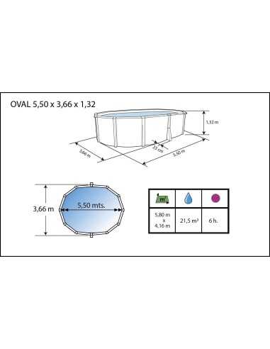 - Diámetro 550×366 cm (21.500 L)