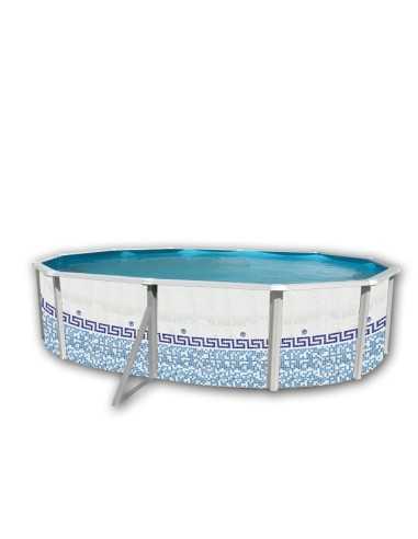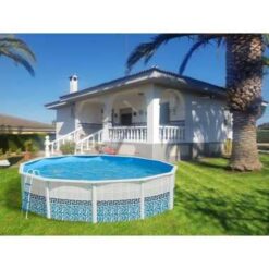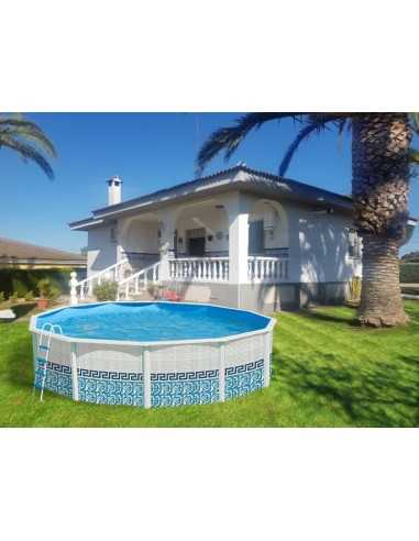 Piscina + filtro de arena + skimmer completo + Escalera 8 peldaños + funda decorativa.