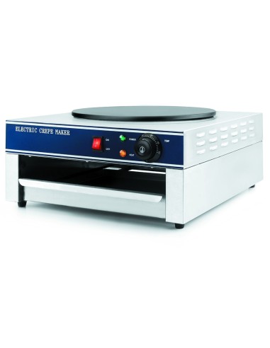 La placa de cocción de esta crepera profesional es de hierro fundido. Su capa antiadherente permite que los crepes se despeguen con total facilidad. Los 3000W de potencia de la placa crepera eléctrica consiguen que se caliente rápidamente, alcanzando la temperatura máxima de 250ºC en unos segundos (calor uniforme en toda la placa). Cuenta con medidas de seguridad para evitar el sobrecalentamiento.