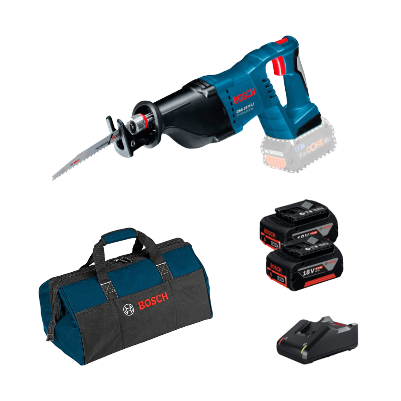 La sierra sable a batería GSA 18 V-LI Professional ofrece un elevado rendimiento de corte y larga autonomía de funcionamiento. Su batería de 18 V permite realizar 100 cortes en vigas de abeto de hasta 100 x 100 mm en una sola carga, lo que asegura un rápido progreso del trabajo. Esta sierra sable, con Electronic Motor Protection, combina larga autonomía con larga vida útil. El sistema SDS de Bosch sin herramientas permite cambiar la hoja de sierra de forma rápida y sencilla.