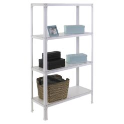 Estanteria metalica de color blanco/blanco con 4 estantes.Tiene una capacidad de carga por estante de 150 kg y una capacidad total de 600 kgs.Con unas medidas en mm de 1600x800x300.Es rigida. No necesita anclaje a la pared. Estanterías sin tornillos. La manera más fácil y rápida de montaje. Estanterías con topes para no rayar el sueloFabricada en Espa¤a por Simonrack y se monta rápido siguiendo las instrucciones