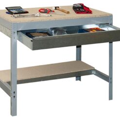 Banco de trabajo metálico de color GRIS/MADERA con capacidad de carga de 600 kg. Las medidas (alto x ancho x fondo) son 842x1210x760 mm. Incluye cajón metálico con capacidad de 35 kg. Producto español, calidad europea, podrás encontrar las intrucciones de montaje en su interior o en este enlace: https://www.youtube.com/watch?v=yEe7ch_4EA4. Medidas en uso del producto: 842x1210x760 mm