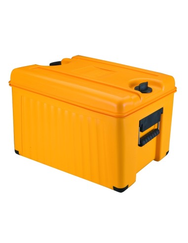 Contenedor isotérmico para transporte de cubetas Gastronorm, perfecto para transporte de alimentos en caterings. Este contenedor isotérmico es rígido, ligero, robusto y apilable. Dispone de puerta sin bisagra, con sistema de cierre en la tapa.