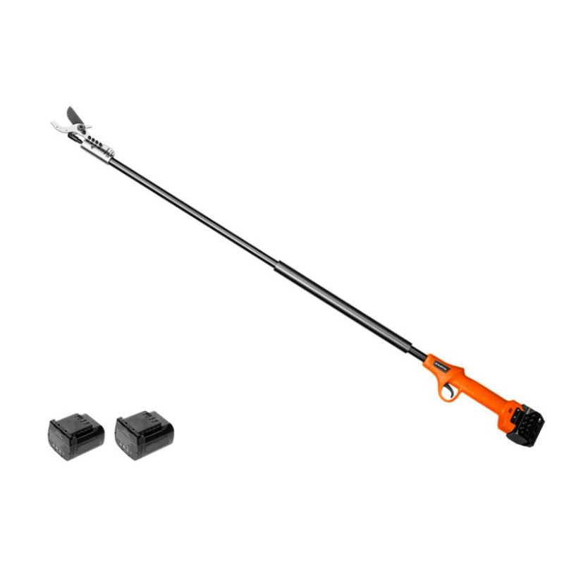 Equipada con un motor de 500W, incluye 2 baterías 16,8V – 2Ah y cargador dual , esta tijera de poda a batería con pértiga garantiza un rendimiento óptimo en cada uso. Su autonomía de 2,5 a 3 horas permite realizar trabajos prolongados sin interrupciones.