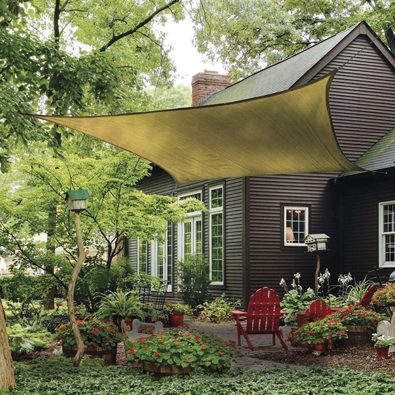 Toldo vela cuadrado de 3,6 m en color arena, resistente al sol, moho y humedad. Ideal para crear sombra duradera en exteriores.